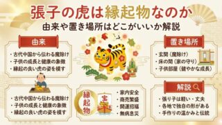 ご当地 張子の虎は縁起物なのか?由来や置き場所はどこがいいか解説 張子の虎は、日本の伝統的な郷土玩具として知られている、かわいらしくも力強い縁起物です。お正月飾りや節句飾り、インテリアとして見かけたことがある方も多いのではないでしょうか。虎は、古くから「強さ」「守護」「魔除け」の象徴とされてきました。その... ご当地