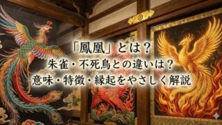 神話 「鳳凰」とは?朱雀・不死鳥との違いは?意味・特徴・縁起をやさしく解説 鳳凰(ほうおう)、朱雀(すざく)、不死鳥(フェニックス)は、どれも美しく神秘的な鳥として知られています。そのため、「全部同じもの?」「違いがよくわからない…」と感じる方も多いのではないでしょうか。実は、この3つはとてもよく似たイメージを持た... 神話